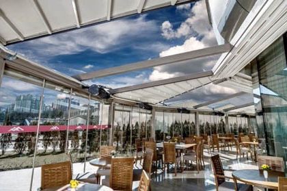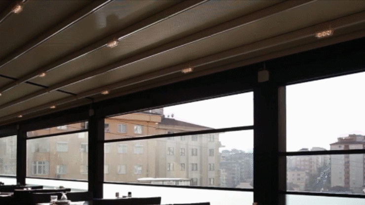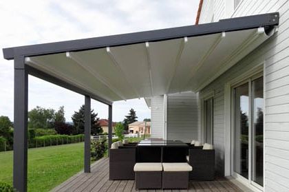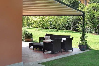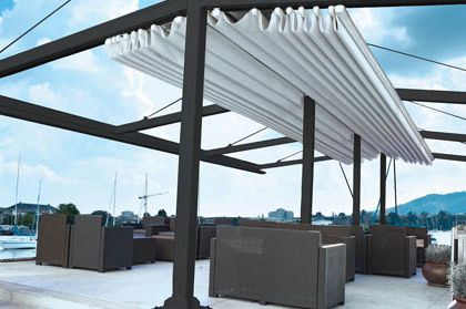 Система может быть интегрирована в любой проект несмотря на кажущуюся сложность монтажа. Пергола состоит из алюминиевого профиля и тканной мембраны. Она хорошо вписывается в дизайнерские решения для мансард, веранд и терасс в коммерческих и жилых помещениях.